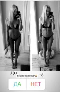 Девушка взялась за дело со всем старанием и усердием и в конце испытательного срока предъявила поклонникам результаты, показав фигуру «до» и «после».