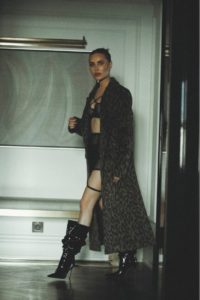 В этот раз Михалкова предстала в прозрачном корсете и шортиках, накинув на плечи леопардовую шубу.