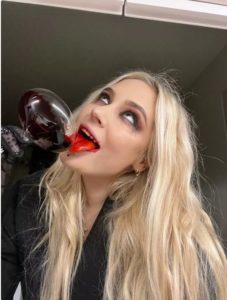 В социальных сетях артистки появилось фото, на котором она облизывает бокал с темно-красной жидкостью.
