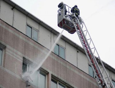 Полиция установила внизу воздушную подушку, в случае, если Ю прыгнет вниз, а также подъемник и шланг.