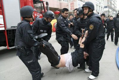 Китайская полиция смыла преступника пожарным шлангом с 8 этажа (ФОТО) (ФОТО, ВИДЕО)