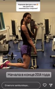 По ее собственному признанию, акттивно заниматься в спортзале она начала в конце 2014 года — то есть без малого 8 лет.