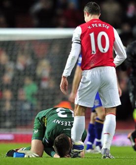 Вратарь «Арсенала» поцеловал ногу Ван Перси (ФОТО, ВИДЕО)
