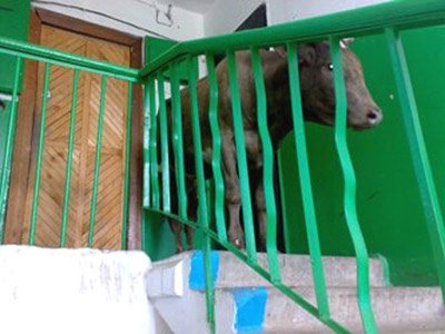 Бык в порыве страсти загнал корову на пятый этаж (ФОТО, ВИДЕО)